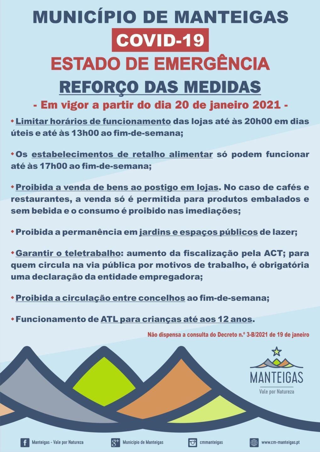 Home Agenda de Eventos - Município de Manteigas Avisos COVID-19 Estado de Emergência – Reforço das Medidas – Em vigor a partir do dia 20 de janeiro