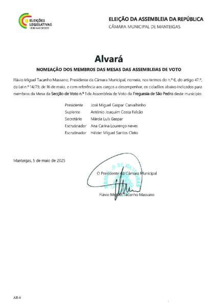 Alvará – Designação dos Membros da Mesa – São Pedro