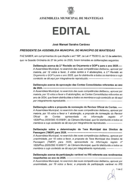 Assembleia Municipal de 27-06-2025 – Deliberações
