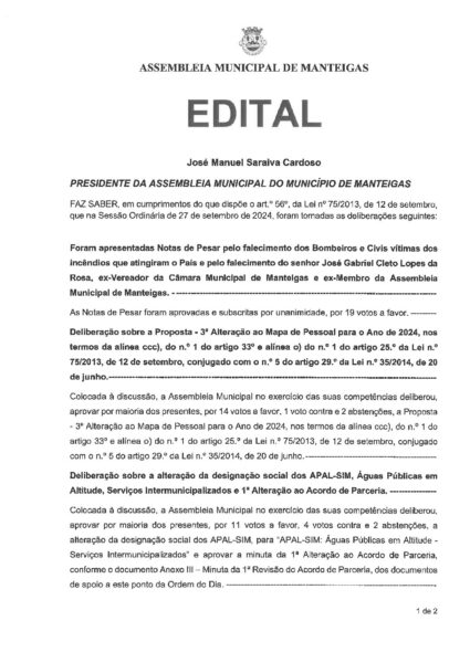 Assembleia Municipal de 27-09-2024 – Deliberações