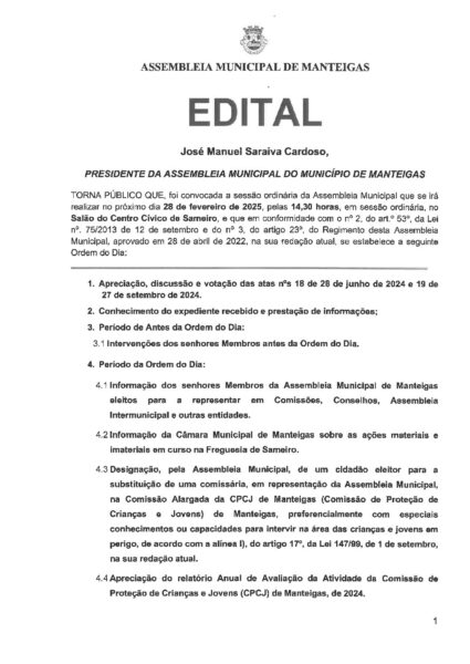 Assembleia Municipal de 28-02-2025 – Ordem de Trabalhos