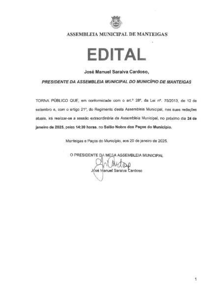 Assembleia Municipal Extraordinária de 24-01-2025 – Convocatória