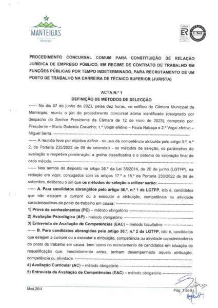 Ata n.º 1 – Procedimento Concursal – Jurista