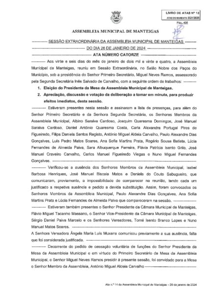 Ata n.º 14 – Assembleia Municipal 26-01-2024