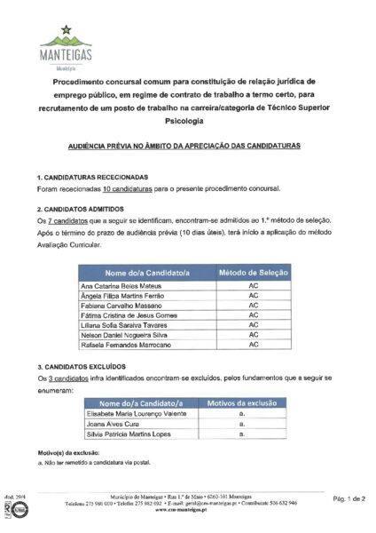 Audiência Prévia no Âmbito da Apreciação das Candidaturas – Procedimento Concursal – Radar Social – Técnico Superior – Psicologia