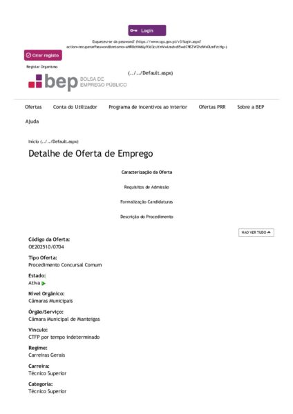 Aviso de abertura BEP – Procedimento Concursal – Técnico Superior – Arquitetura