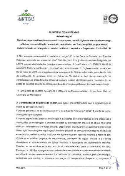 Aviso Integral – Procedimento Concursal – Eng. Civil