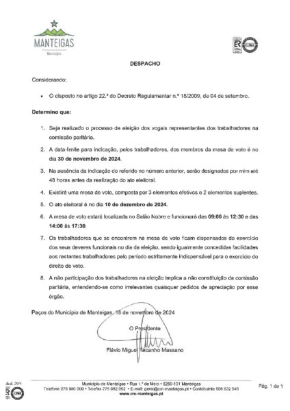Despacho – Comissão Paritária