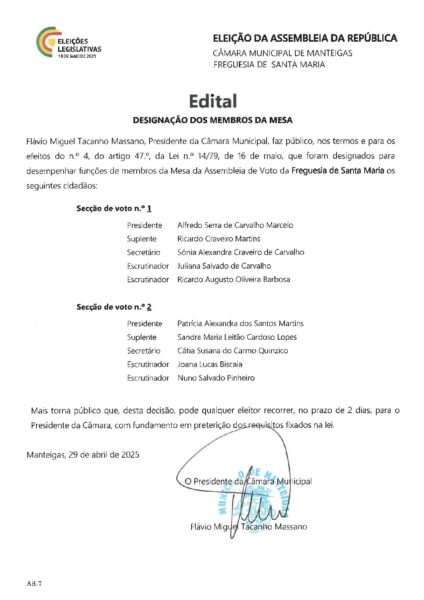 Edital – Designação dos Membros da Mesa – Santa Maria
