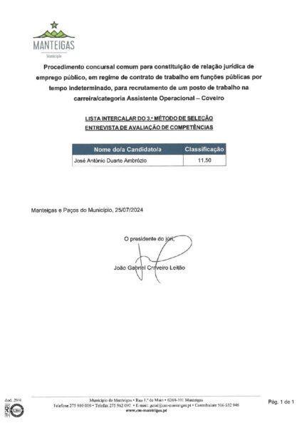 Lista Intercalar do Método de Seleção – Entrevista de Avaliação – Assistente Operacional – Coveiro