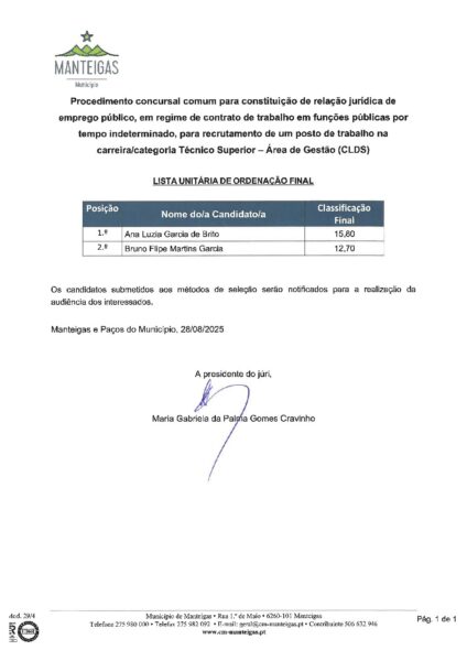 Lista Unitária de Ordenação Final – Gestão (CLDS)