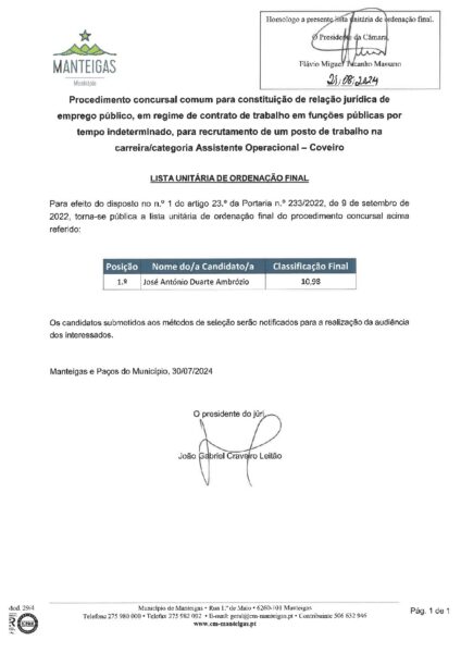 Lista Unitária de Ordenação Final homologada – Coveiro