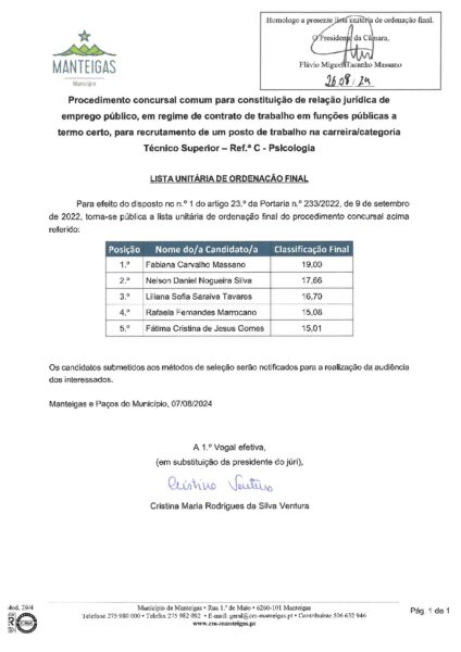 Lista Unitária de Ordenação Final homologada – Radar Social – Psicologia