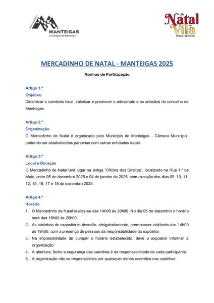 Mercadinho de Natal – Manteigas 2025 – Normas