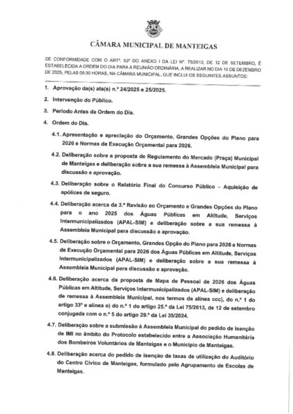 Ordem de Trabalhos – 15-12-2025