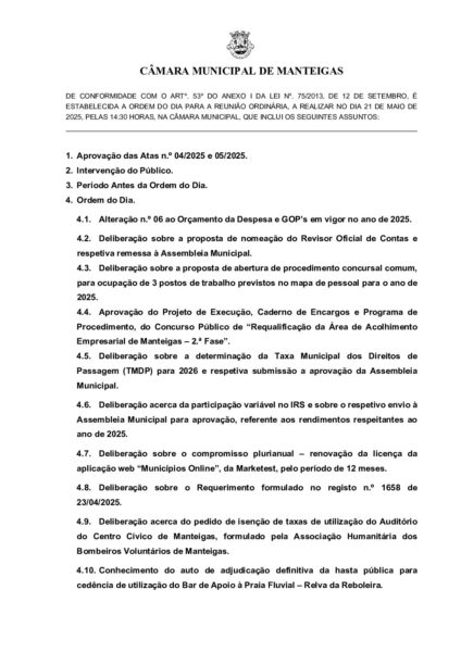 Ordem de Trabalhos – 21-05-2025