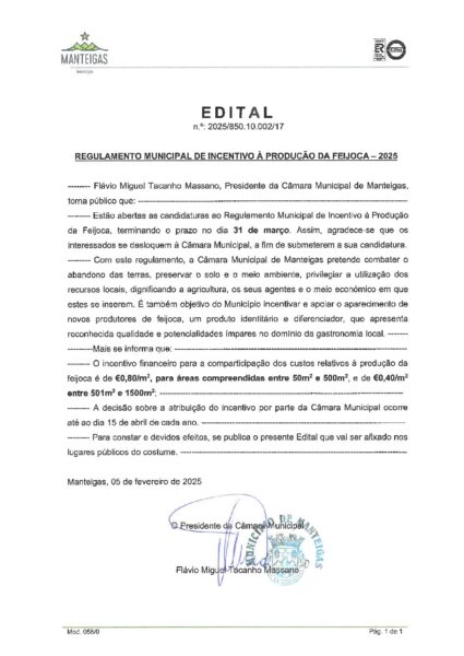 Regulamento Municipal de Incentivo à Produção da Feijoca 2025