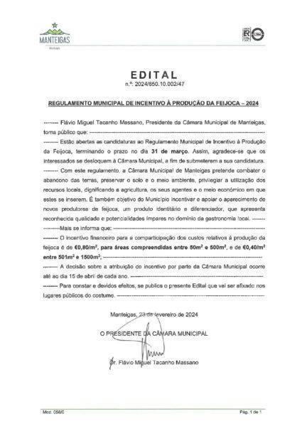 Regulamento Municipal de Incentivo à Produção da Feijoca 2024 – Abertura de Candidaturas