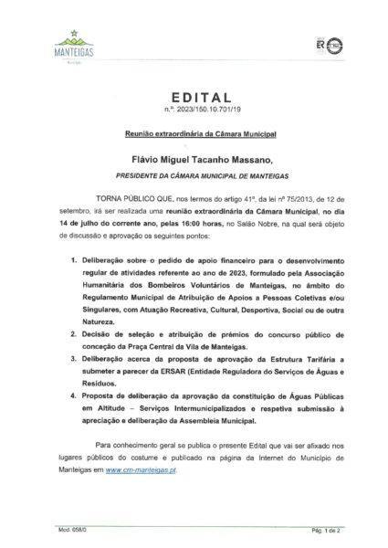 Edital-Reuniao Extraordinaria da Camara Municipal – 14-07-2023