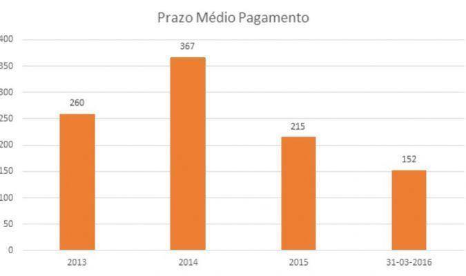 O Prazo Médio de Pagamento tem vindo a baixar desde o ano de 2014, devido ao pagamento das faturas de abastecimento de água e saneamento, contudo o efeito não é imediato, pelo que nos meses que se sucedem é esperada uma redução ainda mais substancial do número de dias do rácio de gestão aqui apresentado.