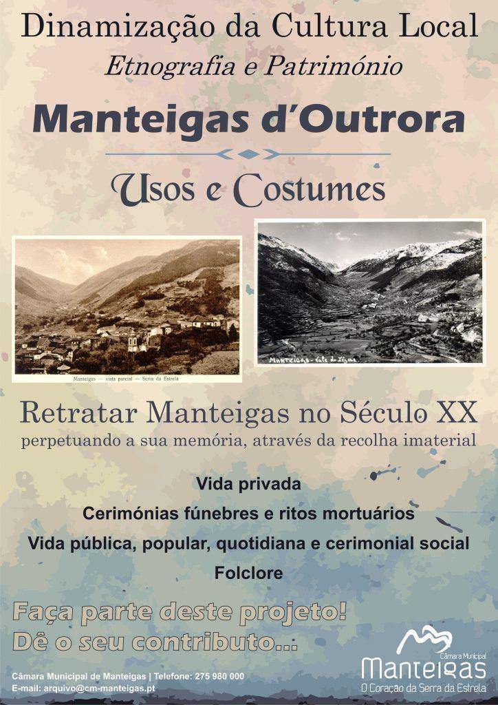 O projeto «Manteigas d’Outrora», levado a cabo pelo Município de Manteigas, visa retratar o território de Manteigas no Século XX, perpetuando a sua memória, através da recolha imaterial dos seus usos e costumes.